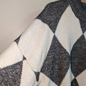 PRINGLE OF SCOTLAND Grey & White Argyle Wool Knit Crewneck Sweater Size Small