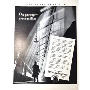 PRINT AD 1943 Assn of American Railroads Serving Troops WWII Cooperation