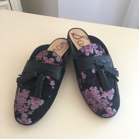 JACQUARD FABRIC AND LEATHER. GORGEOUS CHERRY BLOSSOM MOTIF. TASSEL TRIM. USED BUT IN GREAT CONDITION.