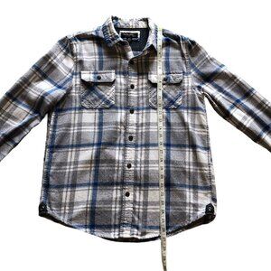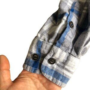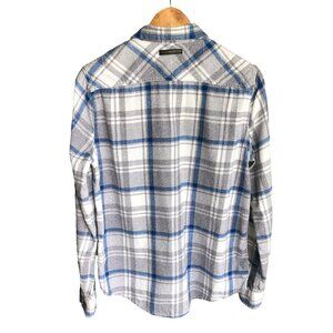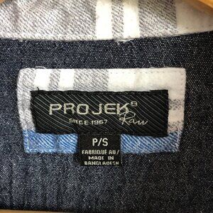 PROJEK RAW Men’s Flannel Plaid Button-Down Shirt 100% Cotton Blue Gray Small