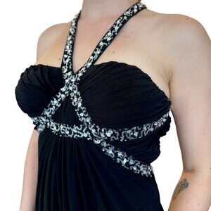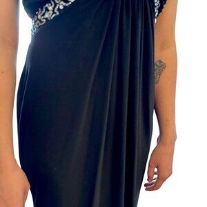 PROM Bridesmaid Gala Long Dress Black with Silver Sequins Greek Style Sheer 5/6