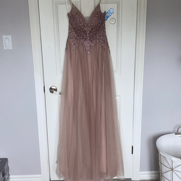 Beautiful Prom Dress, from LuLus in a size 4. This prom dress was worn for 2 hours for taking photos. It is in brand new condition, the dress has a low cut back and adjustable straps. The dress has a built in bra, with a hidden zipper down the back. It also is a 4 layer dress, with a train.