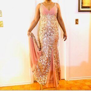 PROM DRESS PINK GOLD SEQUIN EVENING DRESS WOMEN SIZE SMALL