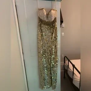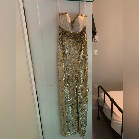 Clarissa prom dress White and gold fish like scales