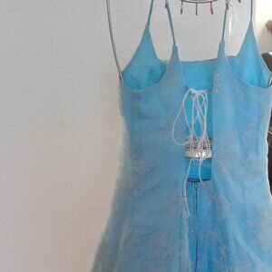 Never worn. A stunning pastel blue princess cut dress. Absolutely gorgeous lace up back.