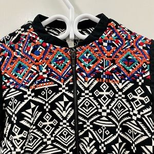 PROMOD PATTERNED AZTEC EMBROIDERED BOMBER JACKET
