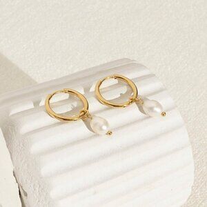 MATERIAL: Dainty circle pearl drop earrings are brass 14k gold plated, hypoallergenic material, It won't do much harm to your skin.