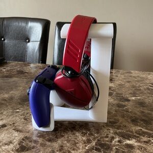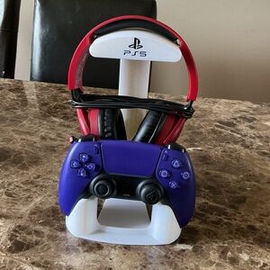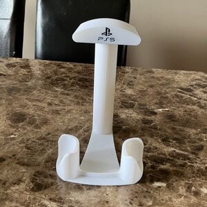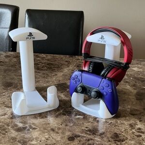 Enhance your gaming setup with this white Controller and headset stand, 9” tall.. Handmade using PLA filament. Perfect for any PlayStation enthusiast.