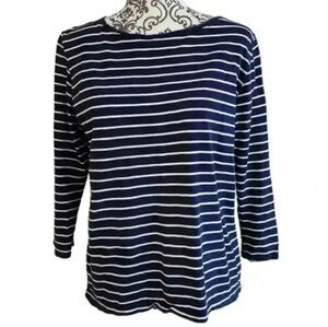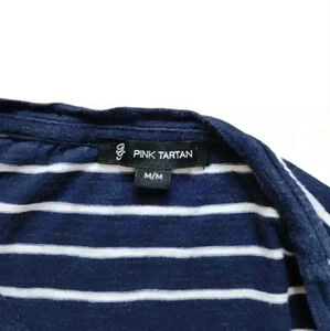 PT Pink Tartan Shirt Nautical Stripes Navy White Three Quarter Sleeves Women's M