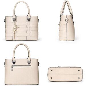 PU Leather Weave Beige Shoulder Bag for Women Elegant Top Handle Designer Purse