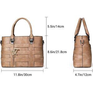 Size: The overall size of the ladies handbags is 11.8*4.7*8.6in(L*W*H) handle length: 5.5in. The size is perfect for you to carry with. The women bags are not heavy and won’t take up too much space
