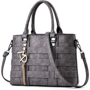 PU Leather Weave Grey Shoulder Bag for Women Elegant Top Handle Designer Purse