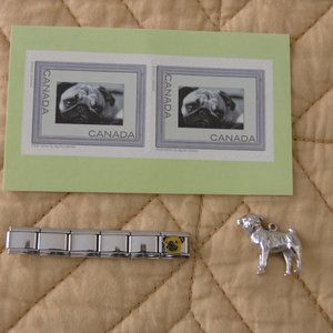 PUG lot Charm, 2 Stamps, Bracelet Link