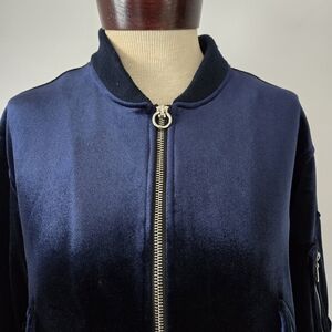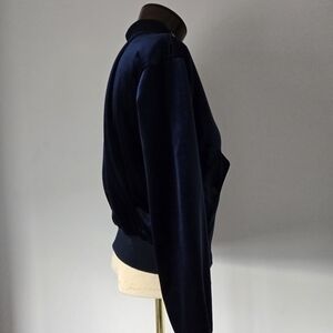 PULL & BEAR crushed velvet navy bomber jacket. Size small