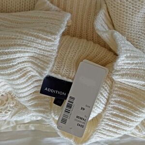 PULL OVER, EMBROIDERED LACE SHOULDERS, SZ 4X, VANILLA, LARGE TURTLENECK, WOOL/ACRYLIC, ADDITION ELLE, IN ORIGINAL BAG, TAG ON, NEVER WORN