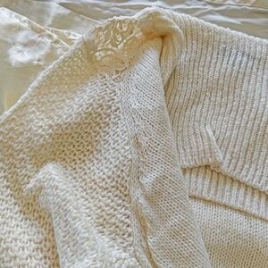 PULL OVER, EMBROIDERED LACE SHOULDERS, SZ 4X, VANILLA, LARGE TURTLENECK, WOOL/AC
