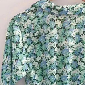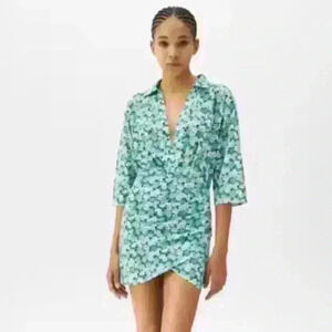 PULL&BEAR | Women's Green/Blue Floral Deep V-neck Wrap Mini Dress