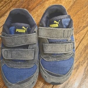 Puma baby runners size 6. Black ones fit like a 5. Black are as new worn once by a very young infant. Blue velcro Pumas worn for a month by a crawler/walker slight fade on suede.