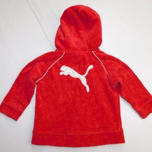 PUMA Girls 18 Month Red Velour Full Zip Hoodie / Track Jacket White Trim