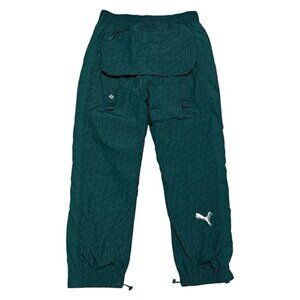 Stay stylish on and off the court with these PUMA HOOPS Basketball Lined TEARAWAY Snap-Up Splash Track Activewear Pants in size Small. Designed for comfort and performance, these green track pants feature a relaxed fit, 32-inch waist size, and 30-inch inseam.
