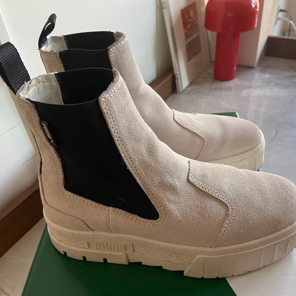 PUMA Mayze Chelsea Boots – Marshmallow & Black – Size 7.5