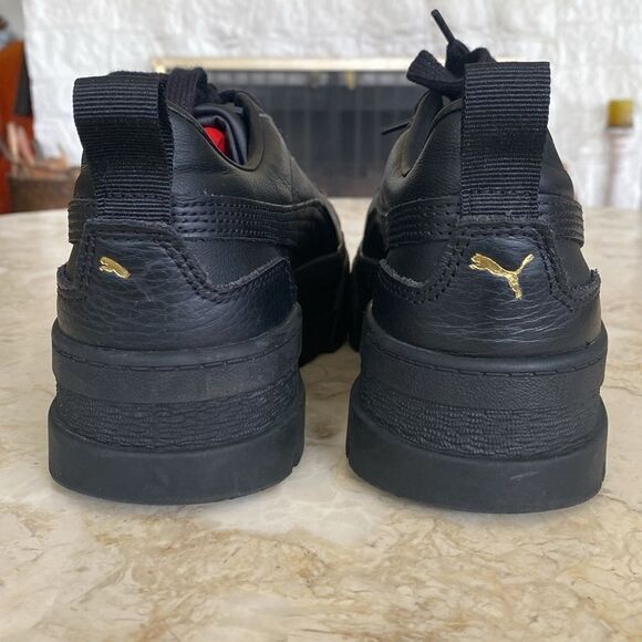 PUMA Mayze Classic Black Leather Platform Sneakers