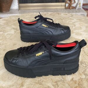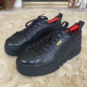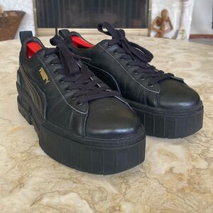 PUMA Mayze Classic Black Leather Platform Sneakers