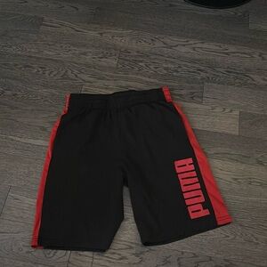 Comfy 🖤❤️PUMA athletic shorts with bold red side panels. Comfortable fit for workouts. Preloved good wear condition approx measurements photographed
