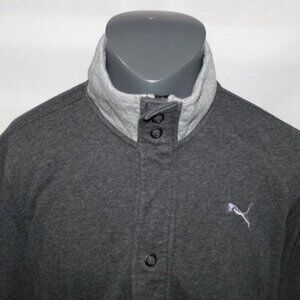 PUMA Mens L Two Tone Gray Full Zip Snap Front Sweatshirt Jacket High Neck