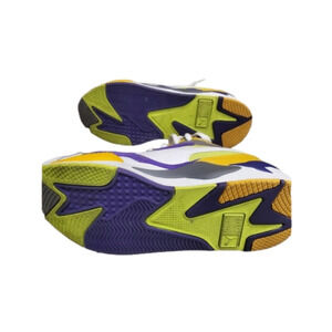 LEVEL UP with the PUMA. The brand’s RS-Xᶟ LEVEL UP offers a foray into the future of sneaker style. A crisp white and grey ground is dressed up with a retro palette of lemon, lime and violet, while contrasting textures – mesh, suede, leather and canvas – add a sensory element to the aesthetic. The tall sole is marked with panels of rubber and finished with the fruit bowl trio of colours underfoot.