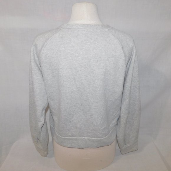 This Womens Small Light Gray Crop Crewneck Sweatshirt with Gold Glitter Spell Out is in great clean bright condition. Sweatshirt is 66% Cotton - 34% Polyester - machine washable.