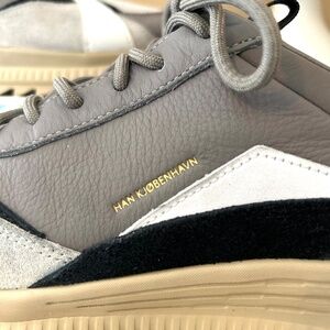 Han Kjobenhavn teamed up with Puma to launch the elevated Han Kjobenhavn x Avid Han 'Steel Grey Safari' sneaker, a futuristic, inside out-inspired silhouette. Created with mesh and leather, the shoe also features suede and nubuck overlays in geometric shapes across the textured upper. A bulky Ignite midsole collaborates with a serrated gum rubber outsole down below to complete the design. Men’s Size 9. No signs of wear, but there is a slight ‘drip’ mark in the leather on the back of the left shoe as seen in photos.