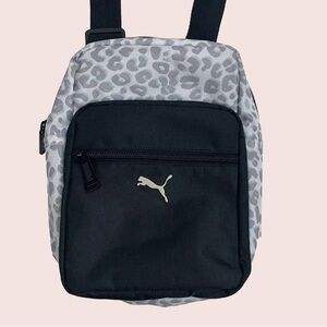 Puma Nylon Crossbody Bag Black Gray Animal Print Zip Pockets Adjustable - Used