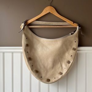 PUNTOTRES Cream Leather Shoulder Bag 13” x 15” x 2”