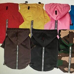 Puppia waterproof hooded raincoat with reflective tape on shoulders and back/ adjustable string and stoppers on hood, sleeves and bottom