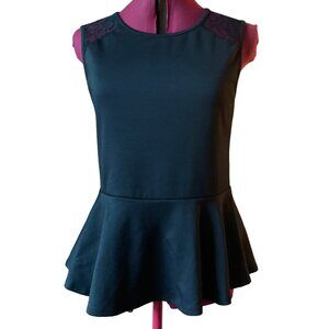 PURE AND SIMPLE - Black Peplum Tank Top with lace and back zip - Medium
