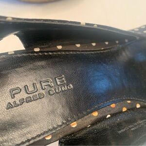 PURE Alfred Sung polka dot cork beach heels-size 8 black and white