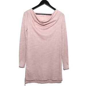PURE + GOOD Dress Cowl Neck Draped Tunic Ribbed Long Sleeve Blush Pink