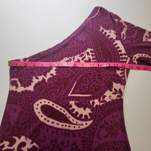 One Shoulder Maxi Dress in a deep eggplant purple with paisley print