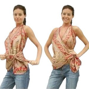 PURPLE Paisley Silk Blend Halter Deep V-Neck MULTI-WEAR (With Instructions)