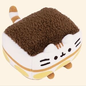How sweet is this mini Tiramisu Squisheen! This adorable Squisheen features Pusheen as a 4” long white and brown tiramisu, with yellow printed ladyfinger cookie details, a super-soft golden-brown underbelly, and her signature striped tail popping out the back. Pusheen’s head is topped with a ‘cocoa dusting’ of textured dark brown plush, and her soft square body is made from an elastic fabric that makes her super-squishy and fun to squeeze!