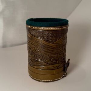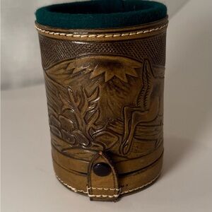 PYMSA Mexican Genuine Leather Felt Lined Dice Cup With Storage Deer Nature