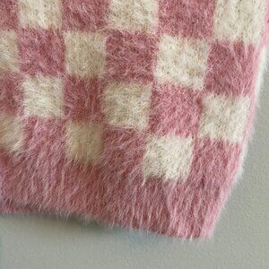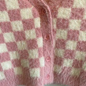 PacSun Fluffy Checkered Pink Short Sleeved Cropped Cardigan