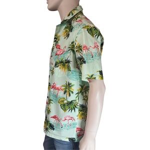 Pacific Legend Hawaiian Shirt Tiki Vintage Flamingoes Palm Trees 100% Cotton