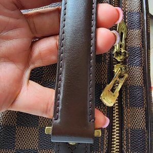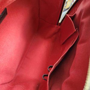 In excellent condition. Clean interior, no stain. Little tarnishing of goldhardware. With light scuffing on trim edges/corners