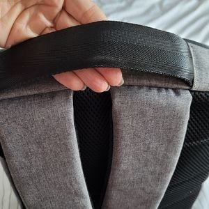 Brand new backpack with vinyl lining for easy cleaning. 3 pockets and double zipper in big back section, 2 small and 1 pen pocket in front zipper. Padded adjustable straps with breathable netting . 14 x 18 inches