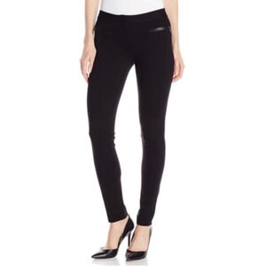 These soft jersey trousers are accented with leather-trimmed zip pockets in the front and back. The slim profile is streamlined with raised seams along the front and behind the knees. Hook-and-eye closure and zip fly