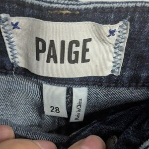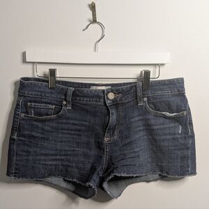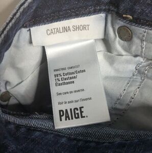 Paige Catalina Shorts, size 28. Medium-dark wash with light distressing. Mid rise, short inseam (about 2.5")