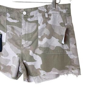 This effortlessly cool, faded camo print short is designed with a mid-rise, slightly relaxed silhouette and is finished with utility patch pockets and a casual frayed hem.