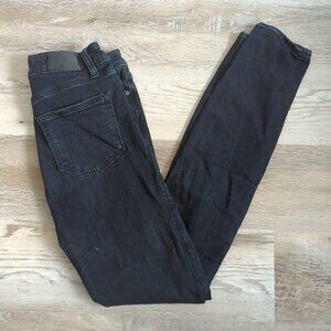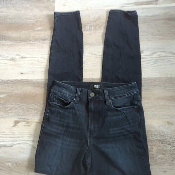 The Hoxton high rise, ultra skinny is super stretchy to guarantee the skinniest fit down the leg. Part of the Paige core collection, this style features a dark blue wash and a single ripped knee.